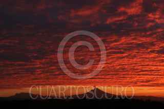 CUERNAVACA, MORELOS, 19OCTUBRE2023.- Espectacular amanecer desde la ciudad de Cuernavaca, al este se observan los volcanes Popocatépetl e Iztaccíhuatl, y arriba un mar de nubes que se tiñen de colores naranjas. El clima en la entidad se reporta fresco por las mañanas incrementado la temperatura con el paso de las horas. FOTO: MARGARITO PÉREZ RETANA / CUARTOSCURO.COM