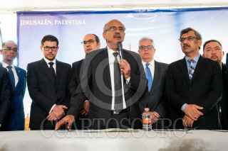 CIUDAD DE MÉXICO, 19OCTUBRE2023.- Mohamed Saadat, embajador de la República de Palestina en México, ofreció conferencia de prensa en compañía de embajadores de Marruecos, Jordania, Malasia, Turquía, Líbano, por mencionar algunos, para dar recuento de las perdidas y daños que ha provocado el conflicto bélico entre Hamas e Israel. Condeno las medidas que Israel ha tomado con el pueblo palestino desde el hacinamiento y los bordados a un hospital que reportó más de 500 perdidas humanas. FOTO: GALO CAÑAS/CUARTOSCURO.COM