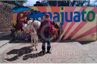 GUANAJUATO, GUANAJUATO, 20OCTUBRE2023.- Don Ignacio acompañado de su burro La Azul posan para una foto afuera del Museo de las Momias. FOTO: GRACIELA LÓPEZ /CUARTOSCURO.COM