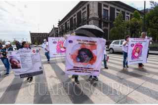 TOLUCA, ESTADO DE MÉXICO, 20OCTUBRE2023.- Integrantes de la Colectiva Feminista Ehécatl se manifestaron en Palacio de Gobierno exigiendo la destitución del Fiscal General de Justicia del Estado de México José Luis Cervantes Martínez y la Fiscal Dilcya Samantha García Espinoza de los Monteros, por diversos actos de omisión, corrupción en los casos de feminicidio de Monserrat Juárez Gómez y Vania Erandi Macías Lozada. FOTO: CRISANTA ESPINOSA AGUILAR /CUARTOSCURO.COM