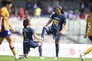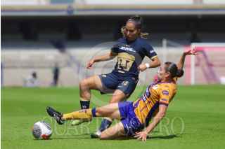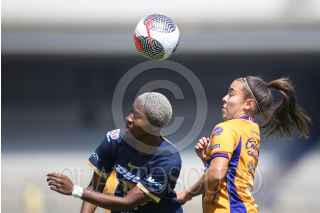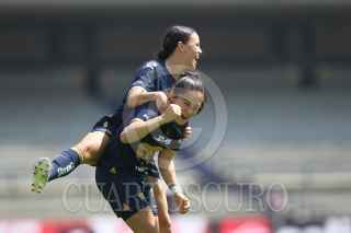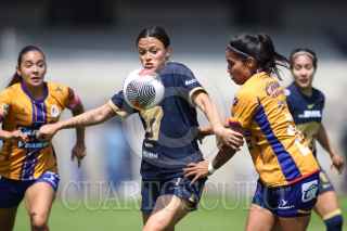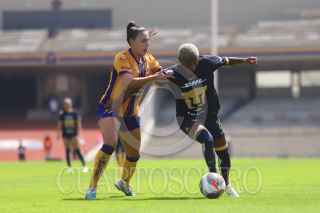 CIUDAD DE MÉXICO, 21OCTUBRE2023. Paola Chavero de Pumas intenta recibir un balón tras la barrida de Jaquelín García del Atlético durante el partido de fútbol Pumas vs Atlético San Luis correspondiente a la jornada 16 del Torneo Apertura 2023 de Liga BBVA MX Femenil, en el Estadio Olímpico Universitario. FOTO: EDGAR NEGRETE/CUARTOSCURO.COM