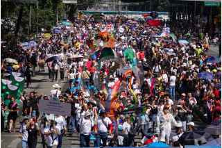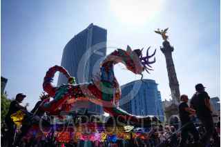 CIUDAD DE MÉXICO, 21OCTUBRE2023.- Se llevó acabo el Desfile y Concurso de Alebrijes Monumentales 2023, esto en su décimo quinta edición, dicho evento comenzó en la Plaza de la Constitución y terminó en el Ángel de la Independencia. El Museo de Arte Popular quien funge como organizador del desfile y concurso busca fomentar y promover el arte mexicano. FOTO: ROGELIO MORALES /CUARTOSCURO.COM