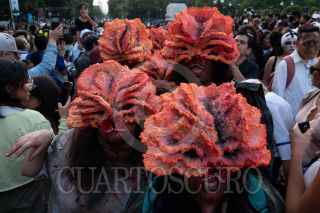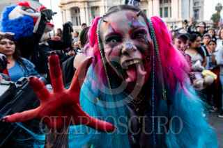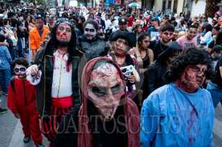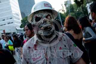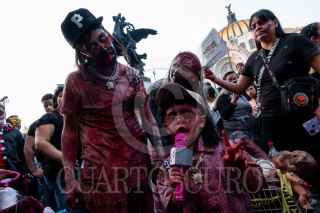 CIUDAD DE MÉXICO, 21OCTUBRE2023.- Miles de personas tomaron las calles de Reforma y el Centro Histórico para participar en la edición 2023 de la Marcha Zombie. El recorrido comenzó en el Monumento a la Revolución y finalizó en el Zócalo capitalino, la marcha invita a los asistentes a donar alimentos y a que cualquiera participe una vez que se “zombifique”. FOTO: GALO CAÑAS/CUARTOSCURO.COM