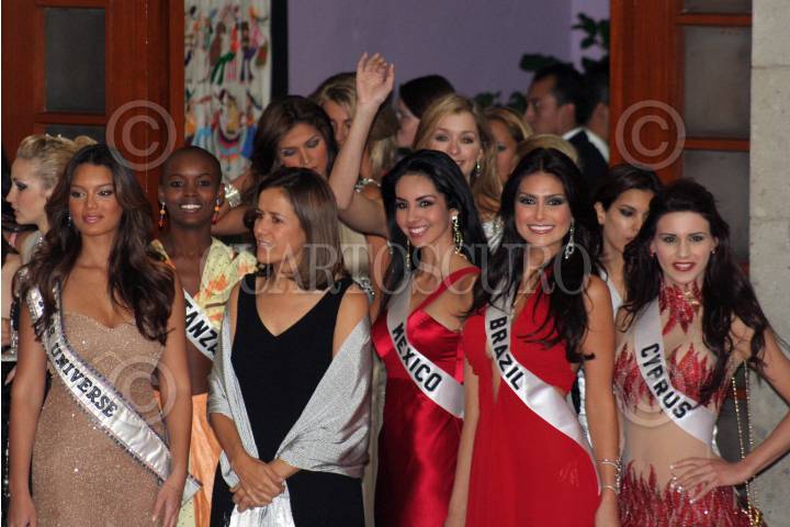 MÉXICO, D.F., 22MAYO2006.- La primera dama Margarita Zavala, y Zuleyka Rivera, Miss Universo, durante una cena con las concursantes del certamen de belleza Miss Universo en la residencia oficial de Los Pinos. FOTO: ISAAC ESQUIVEL/CUARTOSCURO.COM
