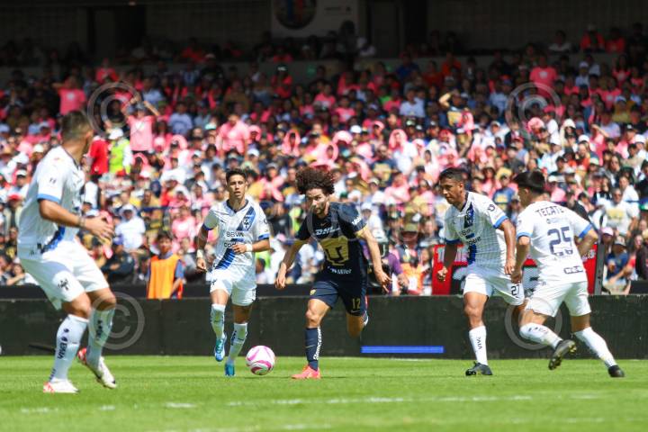 CIUDAD DE MÉXICO, 22OCTUBRE2023.- César "Chino" Huerta de Pumas desborda a jugadores de Monterrey, durante el encuentro disputado en el Estadio Olímpico Universitario. FOTO: MOISÉS PABLO/CUARTOSCURO.COM