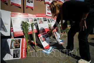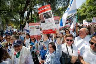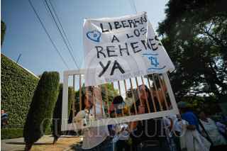 CIUDAD DE MÉXICO, 22OCTUBRE2023.- Ciudadanos de origen israelí se manifestaron afuera de la embajada de Israel para exigir la liberación de sus compatriotas por parte de la organización criminal palestina Hamás, esto durante el conflicto bélico en la Franja de Gaza. FOTO: MOISÉS PABLO/CUARTOSCURO.COM