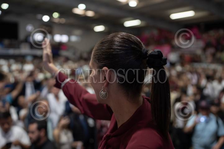 ENSENADA, BAJA CALIFORNIA, 22SEPTIEMBRE2023.- La Dra. Claudia Sheinbaum, aspirante a la candidatura de la Presidencia de la República del partido Morena, visitó el puerto de Ensenada. En el evento “Encuentro con Militancia Baja California, miles de simpatizantes acudieron para brindarle su apoyo a Sheinbaum, quien destacó la ardua labor de la gobernadora del estado por los progresos del Estado. El dirigente de Nacional de Morena, Mario Delgado, la gobernadora Marina del Pilar, el alcalde de Ensenada, Armando Ayala y hasta la presidenta municipal de Tijuana, Monserrat Caballero, estuvieron presentes en la reunión. Entre los momentos emblemáticos del evento, se destacó la escena donde Sheinbaum cantó una de las canciones favoritas del Presidente Andrés Manuel López Obrador, “Ya supérame” en compañía del cantante de Grupo Firme, Eduin Caz. FOTO: OMAR MARTÍNEZ/ CUARTOSCURO.COM