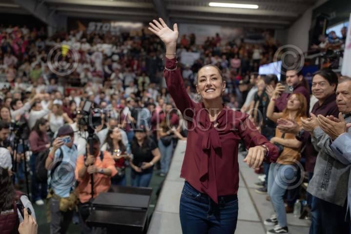 ENSENADA, BAJA CALIFORNIA, 22SEPTIEMBRE2023.- La Dra. Claudia Sheinbaum, aspirante a la candidatura de la Presidencia de la República del partido Morena, visitó el puerto de Ensenada. En el evento “Encuentro con Militancia Baja California, miles de simpatizantes acudieron para brindarle su apoyo a Sheinbaum, quien destacó la ardua labor de la gobernadora del estado por los progresos del Estado. El dirigente de Nacional de Morena, Mario Delgado, la gobernadora Marina del Pilar, el alcalde de Ensenada, Armando Ayala y hasta la presidenta municipal de Tijuana, Monserrat Caballero, estuvieron presentes en la reunión. Entre los momentos emblemáticos del evento, se destacó la escena donde Sheinbaum cantó una de las canciones favoritas del Presidente Andrés Manuel López Obrador, “Ya supérame” en compañía del cantante de Grupo Firme, Eduin Caz. FOTO: OMAR MARTÍNEZ/ CUARTOSCURO.COM