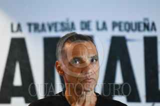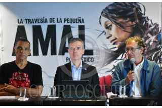 CIUDAD DE MÉXICO, 23OCTUBRE2023.- Giovanni Lepri, representante de ACNUR para la ONU; David Lan, fundador y director de "Te Walk Productions", y Romain Greco, productor, durante la presentación de “La travesía de la pequeña Amal en México”. Será el próximo 17 de noviembre cuando la marioneta de 3.6 metros de altura la cual representa a niños refugiados visitará la capital del país en donde se realizarán una gran variedad de actividades. FOTO: MARIO JASSO/CUARTOSCURO.COM