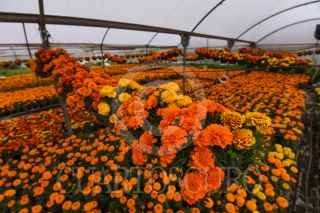ATLACOMULCO, ESTADO DE MÉXICO, 23OCTUBRE2023.- Los viveros de San Lorenzo Tlacotepec en Atlacomulco se visten de naranja y amarillo ir la producción y venta de la flor de cempasúchil en maceta, la cual es producida por floricultores de esta comunidad, y las cuales serán ocupadas para adornar las ofrendas con motivo del Día de Muertos; durante la pandemia su producción y venta fue baja pero se han ido recuperando poco a poco y los visitantes no dudan en llevarse sus flores de cempasúchil para adornar sus hogares. FOTO: CRISANTA ESPINOSA AGUILAR /CUARTOSCURO.COM