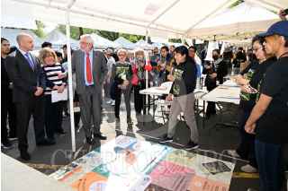 CIUDAD DE MÉXICO, 23OCTUBRE2023.- El Festival Geópolis, que de manera lúdica busca enseñar a las y los alumnos de bachillerato qué es la Geografía y cuáles son los tipos de problemas que resuelven los geógrafos, inició hoy en la UNAM. El rector Enrique Graue Wiechers hizo un recorrido por diferentes stands, instalados en el Instituto de Geografía (IGg), como el del Geoparque de la Mixteca Alta, donde se ofrecen talleres sobre temas tan diversos como Paleosismología y tsunamis; respecto a la información que brindan los anillos de los árboles; sobre los incendios forestales y el manejo del fuego en México, entre otros. FOTO: UNAM/CUARTOSCURO.COM