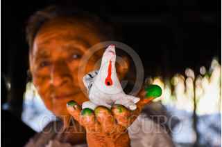 TEPAKAN, CALKINÍ, CAMPECHE. 23OCTUBRE2023.- De cara al día de muertos Alfareros de tepakán ubicado en el municipio de Calkiní realizan artesanías de barro entre ellos candeleros, incensarios, floreros y los famosos silbatos con formas de algún animalito que son colocados en los altares del día de muerto como un juguete para los niños fallecidos. Este oficio ha pasado de generación por todos los pobladores como el caso de Doña Cecilia Pan Cajún de 80 años de edad quien desde temprana edad aprendió la alfarería por medio de sus padres y que sin ningún molde realiza las artesanías. FOTO: MICHEL BALAM/CUARTOSCURO.COM