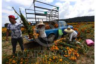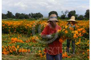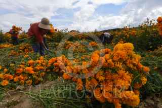 TENANGO DEL VALLE, ESTADO DE MÉXICO, 24OCTUBRE2023.- Pobladores de San Francisco Putla en Tenango del Valle iniciaron el corte de la flor de cempasúchil, uno de los elementos más representativos en la celebración del Día de Muertos, desde muy temprana hora se llega a los campos de flor para iniciar el corte, algunos compradores llegan a los campos para poderlas llevar a otras comunidades o municipios. En Tenango del Valle son más de 400 los productores de flor de cempasúchil, nube y alhelíes de 5 colores para esta temporada, en donde el precio de las flores se ha mantenido de manera constante sin sufrir incrementos en su costo. FOTO: CRISANTA ESPINOSA AGUILAR /CUARTOSCURO.COM