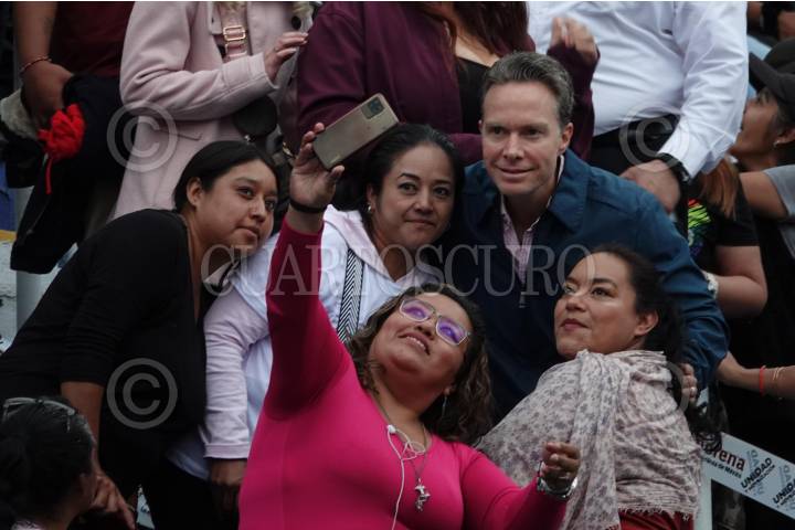 CIUDAD DE MÉXICO, 24OCTUBRE2023.- El senador Manuel Velasco se tomó una selfie con simpatizantes durante su llegada al Encuentro con la Militancia en la Ciudad de México en el Estadio Ciudad de los Deportes. FOTO: GRACIELA LÓPEZ /CUARTOSCURO.COM