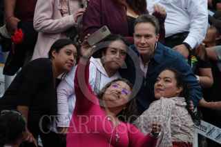 CIUDAD DE MÉXICO, 24OCTUBRE2023.- Hugo López-Gatell se tomó una selfie con simpatizantes durante su llegada al Encuentro con la Militancia en la Ciudad de México en el Estadio Ciudad de los Deportes. FOTO: GRACIELA LÓPEZ /CUARTOSCURO.COM
