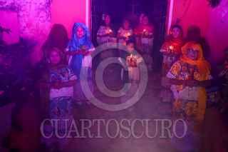 HOCTÚN, YUCATÁN, 24OCTUBRE2023.- Hoy por la noche se realizó en el cementerio municipal de Hoctún una demostración del paseo de las ánimas en dónde un grupo de mujeres mayas caminaron por la calle principal del camposanto portando el traje regional y unas velas. La señora María de la Luz Hu Pech, compartió que cuando era menor de edad le tocó presenciar un paseo de ánimas en las fechas que se celebra el día de muertos así cómo también, la historia de un muchacho que no creía que las ánimas regresaban a visitarlos y fue castigado por su padre fallecido años antes, entre otras. FOTO: MARTIN ZETINA/CUARTOSCURO.COM