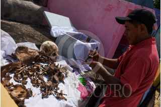 POMUCH, HECELCHAKAN, 25OCTUBRE2023.-Como cada año pobladores de Pomuch que en maya significa “lugar donde se asolean los sapos” del municipio de Hecelchakan, acuden al cementerio para realizar una tradición milenaria maya Choo Ba´ak o limpieza de huesos de sus seres queridos que se adelantaron al Xibalbá, esta práctica que ha pasado de generación y donde sus habitantes preparan el regreso de sus familiares con la limpieza de los restos y el cambio de paño de los osarios para que estén listos el día de muertos, pues para el habitante maya la muerte no era el fin de la vida, sino un ciclo dentro del universo. FOTO: MICHAEL BALAM/CUARTOSCURO.COM