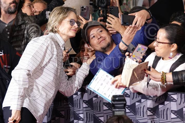 MORELIA, MICHOACÁN, 25OCTUBRE2023.- La actriz y directora Jodie Foster durante la alfombra roja de la película Voces de los inocentes, dirigida por Jonathan Denme, en el Cinépolis Morelia Centro durante la edición 21 del Festival Internacional de Cine en Morelia. FOTO: GRACIELA LÓPEZ /CUARTOSCURO.COM
