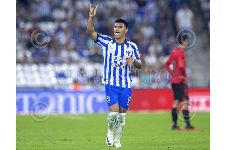 GUADALUPE, NUEVO LEÓN, 25OCTUBRE2023.- Jesús Gallardo de los Rayados del Monterrey festeja el gol ante el Club Tijuana, en el estadio BBVA, partido pendiente de la jornada 4 de la Apertura 2023. Marcador Final: Monterrey 3 - Tijuana 1. FOTO: GABRIELA PÉREZ MONTIEL / CUARTOSCURO.COM