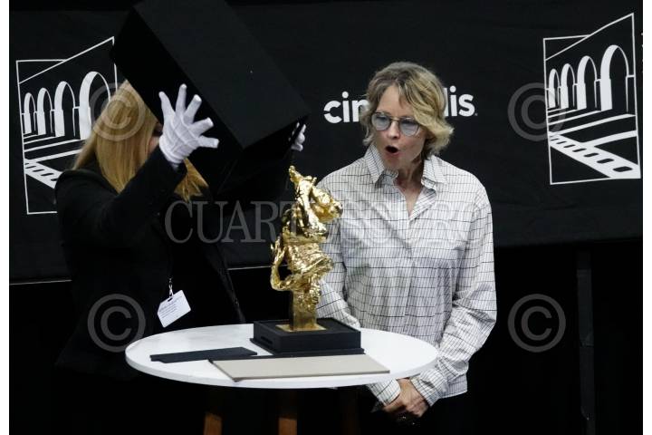 MORELIA, MICHOACÁN, 25OCTUBRE2023.- En el marco de la edición 21 del Festival Internacional de Cine en Morelia, la actriz y directora Jodie Foster recibió una butaca en el Cinépolis Morelia Centro. FOTO: GRACIELA LÓPEZ /CUARTOSCURO.COM