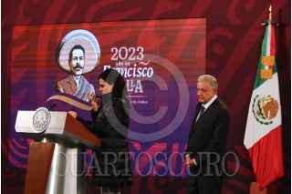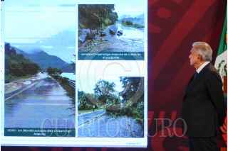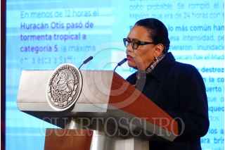 CIUDAD DE MÉXICO, 26OCTUBRE2023.- Andrés Manuel López Obrador, presidente de México, Rosa Icela Rodríguez, Secretaria de Seguridad y Protección Ciudadana, Luisa Maria Alcalde, secretaria de gobernación, durante la conferencia matutina en donde se abordó el tema de los daños del huracán Otis en Guerrero, esto desde el Salón Tesorería de Palacio Nacional. FOTO: ROGELIO MORALES /CUARTOSCURO.COM