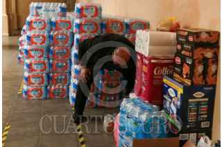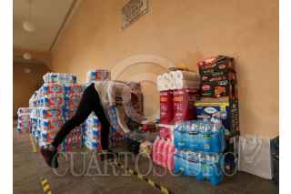TOLUCA, ESTADO DE MÉXICO, 26OCTUBRE2023.- La Universidad Autónoma del Estado de México abrió un centro de acopio en el patio central del edificio de rectoría en apoyo a las personas damnificadas por el huracán Otis en el estado de Guerrero; recibirán agua, atún, frijoles enlatados, leche en polvo, pan, alimento para bebé, galletas, fruta enlatada, productos de higiene personal e insumos de limpieza y se estarán recibiendo hasta el 27 de octubre. FOTO: CRISANTA ESPINOSA AGUILAR /CUARTOSCURO.COM