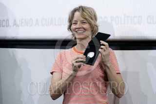 MORELIA, MICHOACÁN, 26OCTUBRE2023.- La actriz y directora Jodie Foster recibió la medalla de la Filmoteca de la UNAM en el Cinépolis Morelia Centro durante la edición 21 del Festival Internacional de Cine en Morelia. FOTO: GRACIELA LÓPEZ /CUARTOSCURO.COM
