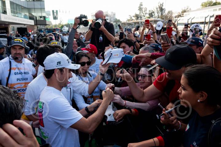 CIUDAD DE MÉXICO, 26OCTUBRE2023.- Sergio “Checo” Pérez salió a la firma de autógrafos durante los trabajos de su equipo de pits en el Autódromo Hermanos Rodríguez. FORO: GALO CAÑAS/CUARTOSCURO.COM