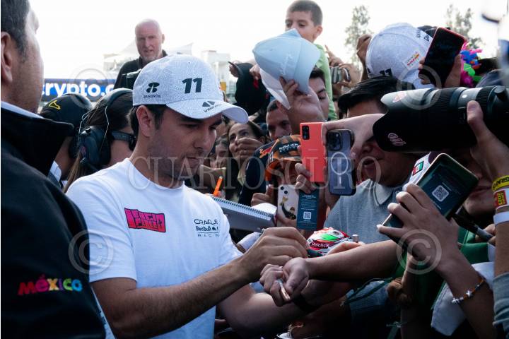 CIUDAD DE MÉXICO, 26OCTUBRE2023.- Sergio “Checo” Pérez salió a la firma de autógrafos durante los trabajos de su equipo de pits en el Autódromo Hermanos Rodríguez. FORO: GALO CAÑAS/CUARTOSCURO.COM