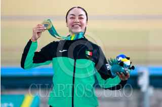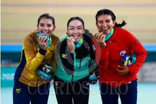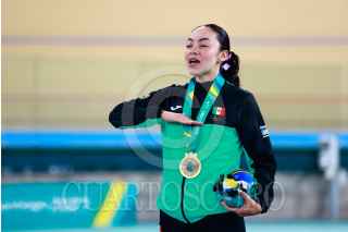 SANTIAGO, CHILE, 26OCTUBRE2023.- La ciclista mexicana Yareli Acevedo obtuvo la medalla de oro en prueba de ciclismo de velocidad, en el Velódromo de Peñalolén, durante los Juegos Panamericanos Santiago 2023. FOTO: CÉSAR GÓMEZ/CUARTOSCURO.COM