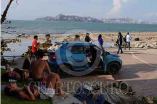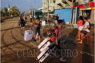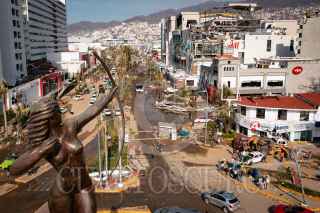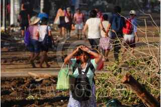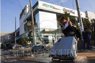 ACAPULCO, GUERRERO, 27OCTUBRE2023.- Los daños en la zona diamante y hotelera de Acapulco continúan visibles tras el paso del huracán "Otis". Ventanas rotas, palmeras caídas y carros arrastrados son parte del panorama en qué turistas y locales tratan de atravesar la zona. FOTO: ROGELIO MORALES/CUARTOSCURO.COM