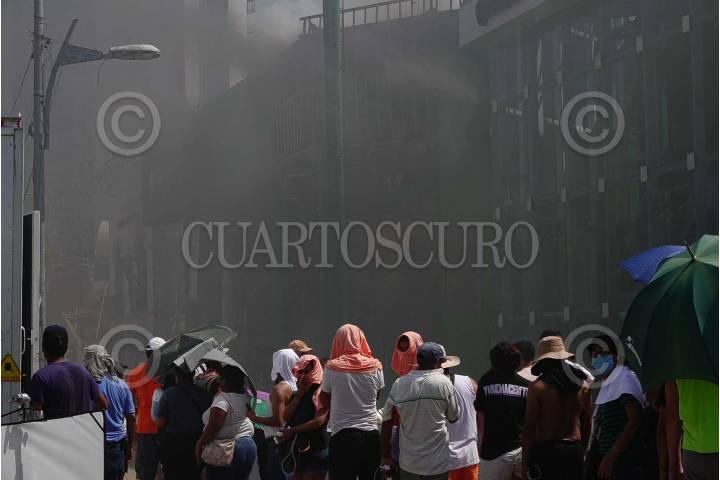 ACAPULCO, GUERRERO, 27OCTUBRE2023.- Habitantes observas un conato de incendio en las inmediaciones de un centro comercial afectado por el Huracán Otis. FOTO: ROGELIO MORALES/CUARTOSCURO.COM