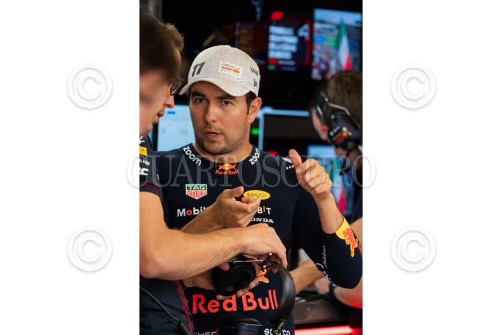 CIUDAD DE MÉXICO, 27OCTUBRE2023.- El piloto mexicano de Red Bull Racing Sergio “Checo” Pérez (11) conversa en la zona de pits previo a la segunda prueba en el Autódromo Hermanos Rodríguez con motivo del Gran Premio de la Ciudad de México de la Fórmula 1. FOTO: GALO CAÑAS/CUARTOSCURO.COM