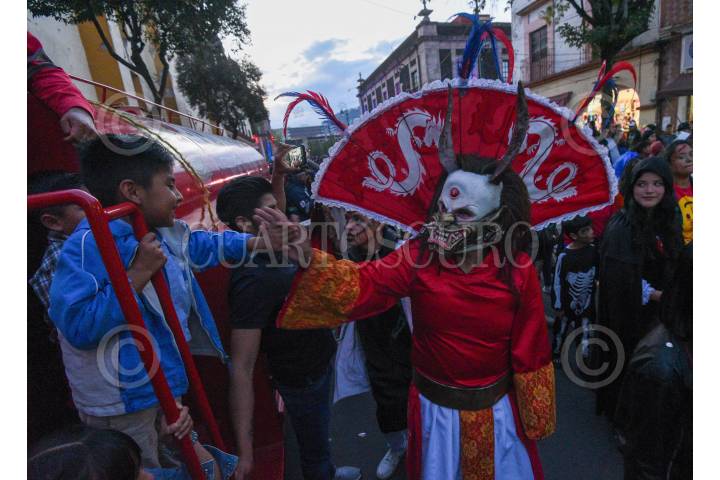 TOLUCA, ESTADO DE MÉXICO, 28OCTUBRE2023.- Zombies y monstruos tomaron las calles de Toluca este sábado por la tarde como parte de la Marcha Zombie que se realiza año con año en la capital mexiquense, los participantes fueron de todas las edades y en sus disfraces volcaron su gran ingenio. FOTO: CRISANTA ESPINOSA AGUILAR /CUARTOSCURO.COM