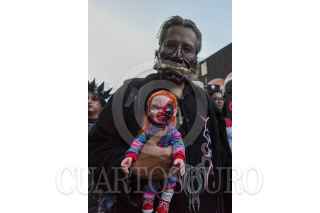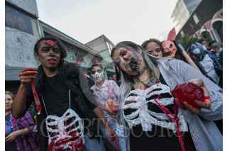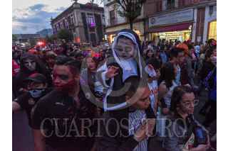 TOLUCA, ESTADO DE MÉXICO, 28OCTUBRE2023.- Zombies y monstruos tomaron las calles de Toluca este sábado por la tarde como parte de la Marcha Zombie que se realiza año con año en la capital mexiquense, los participantes fueron de todas las edades y en sus disfraces volcaron su gran ingenio. FOTO: CRISANTA ESPINOSA AGUILAR /CUARTOSCURO.COM