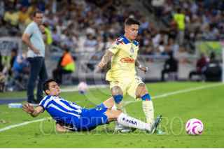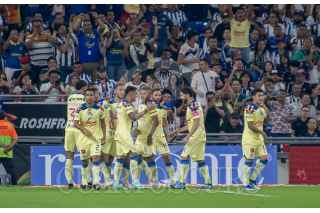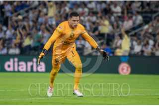 GUADALUPE, NUEVO LEÓN, 28CTUBRE2023.- Luis Malagón, portero del América, festeja el gol ante los Rayados del Monterrey, en el estadio BBVA, partido correspondiente a la jornada 14 de la Apertura 2023. Marcador Final: Monterrey: 0 - América 3. FOTO: CUARTOSCURO.COM