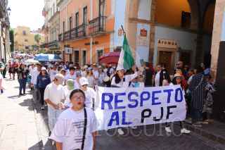 GUANAJUATO, GUANAJUATO, 29OCTUBRE2023.- Manifestación de trabajadores del Poder Judicial por las calles de Guanajuato Capital, después de que el Senado de la República aprobará el 24 de este mes en lo general y lo particular la extinción de 13 fideicomisos del Poder Judicial de la Federación. FOTO: EDGAR NEGRETE LIRA/CUARTOSCURO.COM