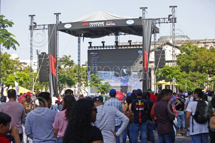 GUADALAJARA, JALISCO. 27OCTUBRE2023.- Hoy durante en el tercer día de actividades de la Formula 1 y simultáneamente la F1 Fanzone en pleno centro histórico de la ciudad, en donde cientos de aficionados del automovilismo se dieron cita para presenciar la carrera del Gran Premio de la Ciudad de México así como para disfrutar de las actividades durante los días de competencia, en esta nueva fecha de la máxima categoría del automovilismo mundial. Y gracias a la adrenalina que provoca el Gran Premio de México y el piloto tapatío Sergio “Checo” Pérez, es la primera vez que el Fanzone de la Formula 1 llega a Jalisco. FOTO: FERNANDO CARRANZA GARCIA / CUARTOSCURO.COM