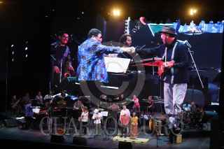 GUANAJUATO GUANAJUATO, GUANAJUATO, 29OCTUBRE2023.- Arturo O´Farrill and The Afro Latin Jazz Orchestra y el Colectivo Conga Patria Son Jarocho durante el espectáculo de clausura de la edición 51 del Festival Internacional Cervantino en la Alhóndiga de Granaditas. FOTO: EDGAR NEGRETE LIRA/CUARTOSCURO.COM
