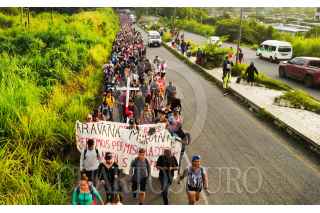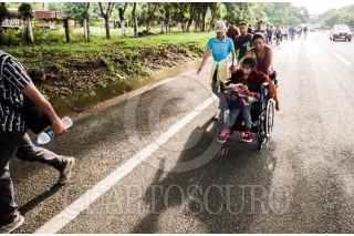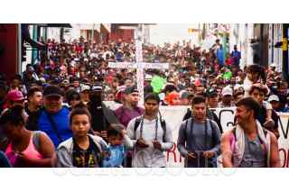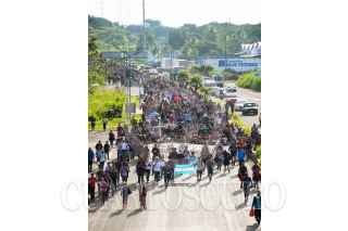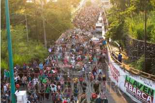 TAPACHULA, CHIAPAS. 30OCTUBRE2023.- 7 Mil migrantes de las distintas nacionalidades salen en caravana rumbo a la frontera Norte de México con Estados Unidos. La multitud partió a las 6:00 A.M de parque Bicenteneario, entre el tumulto se observa mujeres cargando sus hijos. Por el momento las autoridades no han estabalado un dialogo con las personas migrantes. FOTO: DAMIÁN SÁNCHEZ/CUARTOSCURO.COM