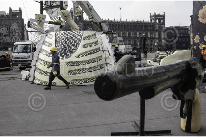 CIUDAD DE MÉXICO, 30OCTUBRE2023.- Fue reprogramada la inauguración de la Ofrenda Monumental del Zócalo Capitalino que se iba a realizar desde día ayer. Personal del Gobierno de la Ciudad trabaja para terminarla, sin embargo autoridades aún no informan de la nueva fecha pero dieron tentativa entre hoy mañana. FOTO: ANDREA MURCIA /CUARTOSCURO.COM