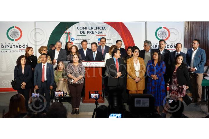 CIUDAD DE MÉXICO, 30OCTUBRE2023.- El diputado Ignacio Mier, coordinador del Morena, durante su participación en la conferencia de prensa en la Cámara de Diputados, en donde dieron a conocer su propuesta de donar un mes de salario para el estado de Guerrero por el Huracán Otis. FOTO: GRACIELA LÓPEZ /CUARTOSCURO.COM