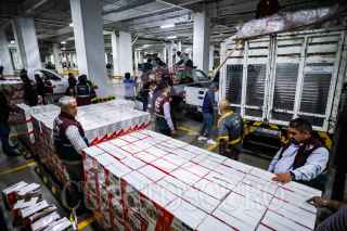CIUDAD DE MÉXICO. 31OCTUBTRE2023.- El Jefe de Gobierno, Martí Batres; ha adquirido 100 mil despensas, desde el día de ayer ya estamos entregando, tenemos un calendario para terminar con estas 100 mil despensas en una semana. Estamos pensando terminar en una semana con estas 100 mil entregas documentadas. Informarles, que hemos destinado los canales que el mando central nos ha proporcionado y estas despensas son entregadas directamente a la Secretaría de Marina, por lo tanto, no hay ningún riesgo, no hay ningún intermediario y el Gobierno de la Ciudad con eso está cumpliendo. Ahí vamos a tener una capacidad de 10 mil comidas por día, estamos pensando proveer en una semana 70 mil comidas más, o sea, 70 mil raciones más que se suman a estas 100 mil. FOTO: GOBIERNO DE LA CIUDAD/CUARTOSCURO.COM