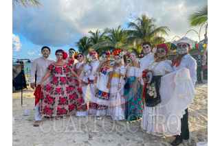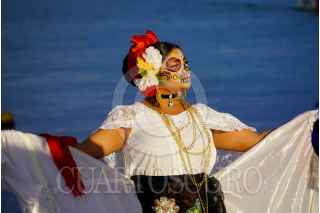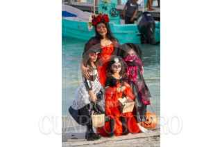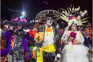 PUERTO JUAREZ, QUINTANA ROO, 31OCTUBRE2023.- En medio de un espectáculo colorido y místico, las calles de Puerto Juárez se iluminan con la presencia de las Catrinas, marcando el inicio del #HanalPixan. El desfile, que arrancó a las 5 p.m., ha sumergido a la ciudad en una celebración vibrante, honrando las tradiciones del Día de los Muertos. Las figuras elegantes de las Catrinas, vestidas con atuendos magníficos y rostros decorados con calaveras, desfilan entre el público, añadiendo un aire de misticismo y solemnidad al evento. Los asistentes se congregan para ser testigos de esta festividad arraigada en la cultura mexicana, que celebra la vida de aquellos que han partido. FOTO: ELIZABETH RUIZ/CUARTOSCURO.COM