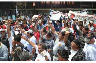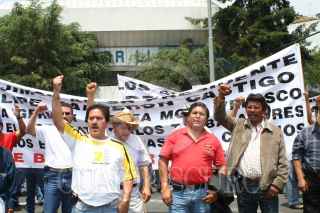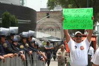 MÉXICO D.F 24MAYO2007.- Decenas de integrantes del sindicato nacional de mineros, realizaron una marcha para demostrar su descontento por la campaña mediatica en contra de Napoleón Gómez Urritia, lider minero.Los manifestantes realizarón un mitin en frente de la secretaria de gobernación y de televisa Chapultepec. FOTO: GUILLERMO MARTÍNEZ/CUARTOSCURO.COM