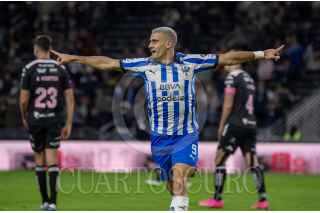 GUADALUPE, NUEVO LEÓN, 31OCTUBRE2023.- Germán Berterame de los Rayados del Monterrey, festeja el gol ante Necaxa, en el estadio BBVA, partido correspondiente a la jornada 15 de la Apertura 2023, Liga MX. Marcador Final: Monterrey 3 - Necaxa: 0 FOTO: CUARTOSCURO.COM