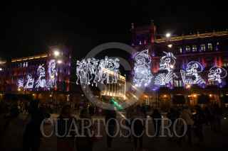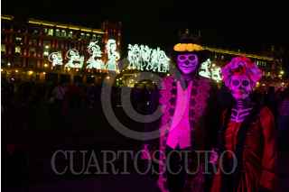 CIUDAD DE MÉXICO, 01NOVIEMBRE2023.- Esta noche habitantes de la ciudad y visitantes acudieron a la explanada del zócalo capitalino a disfrutar de las luces y la Mega Ofrenda con motivo del Día de Muertos. FOTO: EDGAR NEGRETE LIRA/CUARTOSCURO.COM