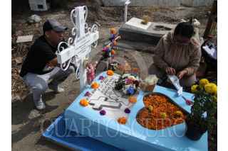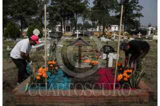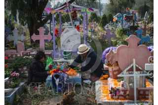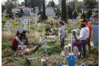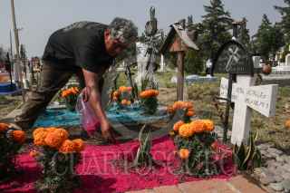 CIUDAD DE MÉXICO, 01NOVIEMBRE2023.- Con flores de Cempasúchil, alimentos, productos de limpieza y hasta bocinas desde temprana hora decenas de familias acuden al Panteón de Tezonco ubicado en la alcaldía de Iztapalapa a limpiar las tumbas de sus seres queridos. FOTO: ANDREA MURCIA /CUARTOSCURO.COM