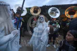 SOLEDAD ETLA, OAXACA, 01NOVIEMBRE2023.- Como es tradición, en Soledad Etla, municipio ubicado a 17 kilómetros de la capital de Oaxaca, pobladores celebraron su muerteada. Acompañados de bandas de música, los participantes recorren las calles y casas de la población, mostrando además su creatividad, pues elaboran los disfraces que portan. FOTO: CAROLINA JIMÉNEZ/CUARTOSCURO.COM