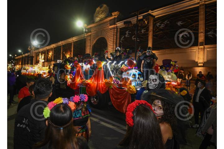 TOLUCA, ESTADO DE MÉXICO, 01NOVIEMBRE2023.- Catrinas y Catrines recorrieron las calles de Toluca como parte de Catrineando 2023, que busca recatar las tradiciones en el Día de Muertos, un evento en donde participa la población en general, este recorrido nació en el 2011 y que con el paso de los años el número de participantes ha aumentado, llegando a convocar a más de 16 mil personas. Este año contaron con la participación de 115 carros alegóricos. FOTO: CRISANTA ESPINOSA AGUILAR /CUARTOSCURO.COM